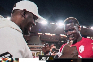 博尔特现场观战摩纳哥比赛,并与博格巴拥抱寒暄