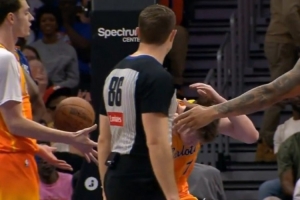 GIF-球迷拿到出界球投篮直接打到克尼佩尔头